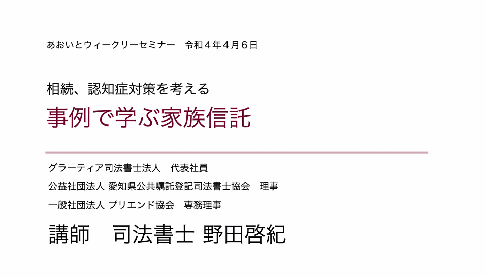 今回のセミナーでは事例をもとに家族信託の有効な活用方法について